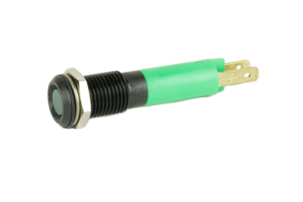 LED indicators for flush mounting, diameter 8+0.2mm are equipped with a diffuse flush 5mm LED in different colours. The connection is made by means of flat-plug connectors 2.8x0.8mm. IP67 protection degree