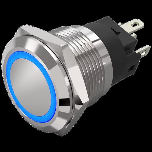 82-5151.2124 Schakelaar RVS verzonken (vast) verlicht ring blauw ø19mm 24VAC/DC soldeer/faston